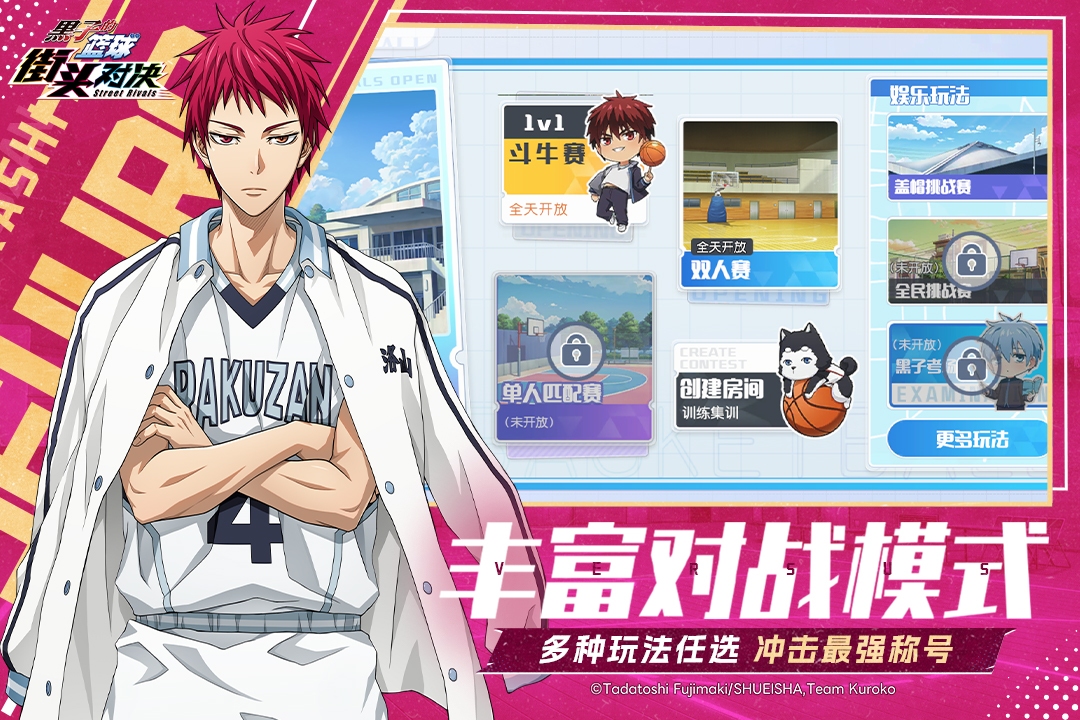 全新热血篮球竞技手游《黑子的篮球:街头对决》是改编自日本人气篮球动漫「黑子的篮球」的篮球即时对抗游戏,还有多种丰富的篮球游玩模式,「NBA森林狼篮球宝箱」「ZONE青峰典藏篮球宝箱」回归